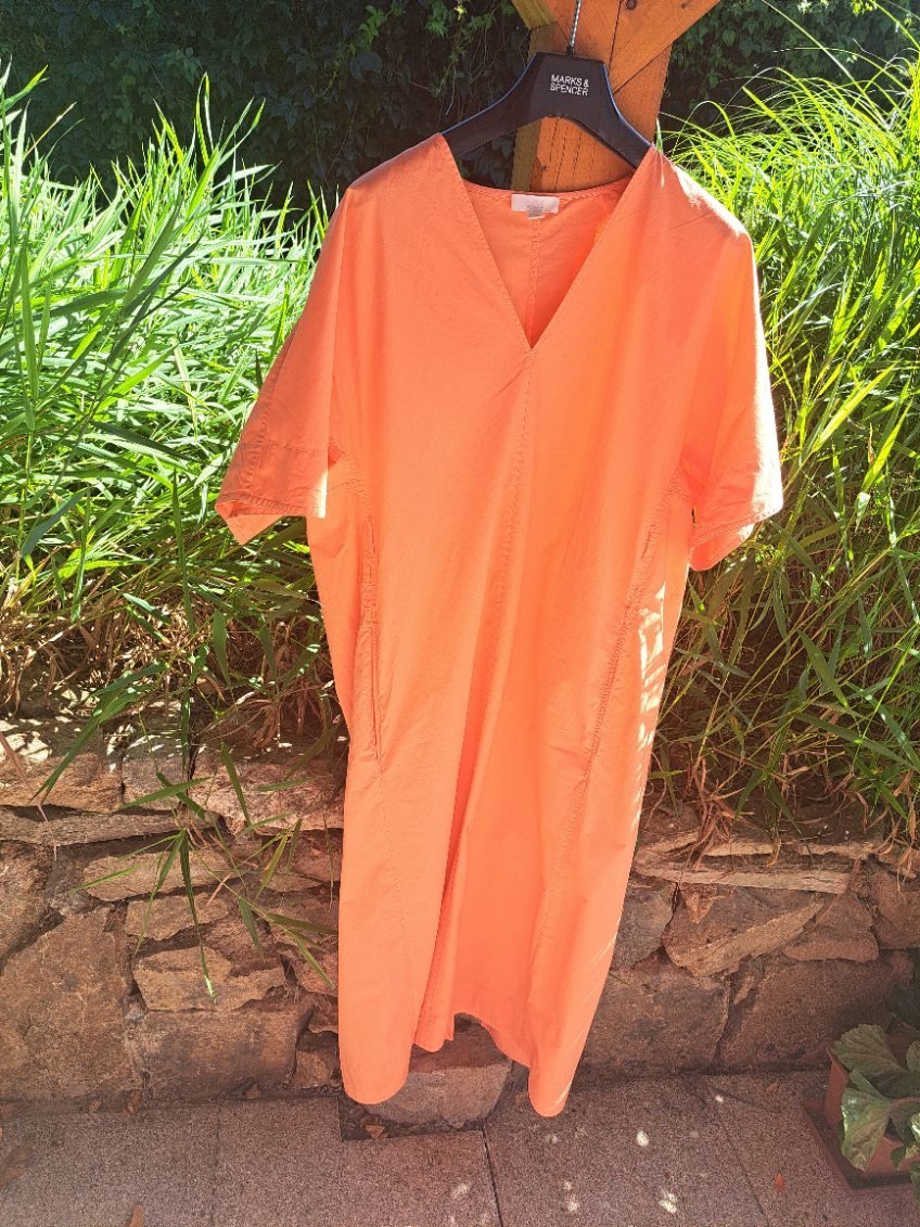 Oranžové šaty, velikost 38, 100 % bavlna. 500,-- Kč + poštovné.