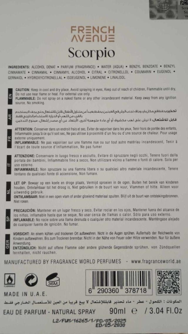 Prodám novinku 2025, pouze rozbalenou edp v luxusním provedením French Avenue Genesis Scorpio 90 ml, kořeněně dřevitý unisex, záruka do roku 2030. PC 1320 Kč. Včetně krabičky.