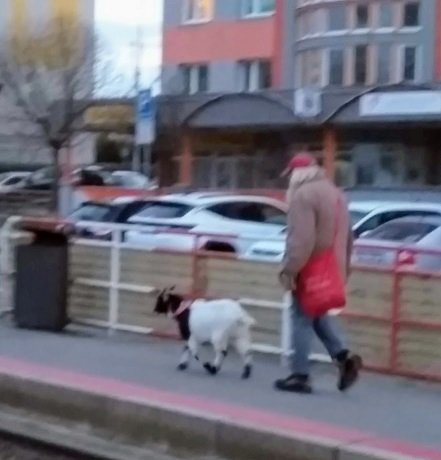 Včera u nás na zastávce, pán s ní pak nastoupil do tramvaje. A neměla košík!