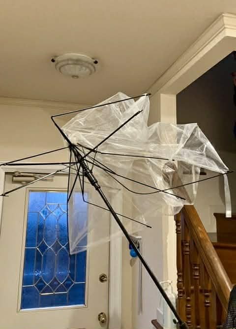 Venku nám trochu fouká.....deštník malého Garfíka....![]()