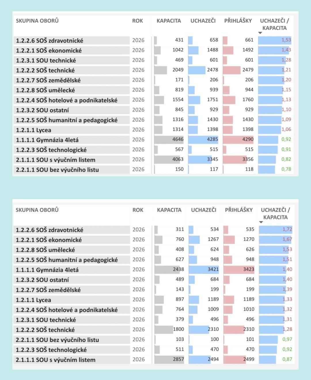 Tak pro úplnost, letos i situace na středních v Praze, teda ten prý papírové slabší ročník 2010/2011.