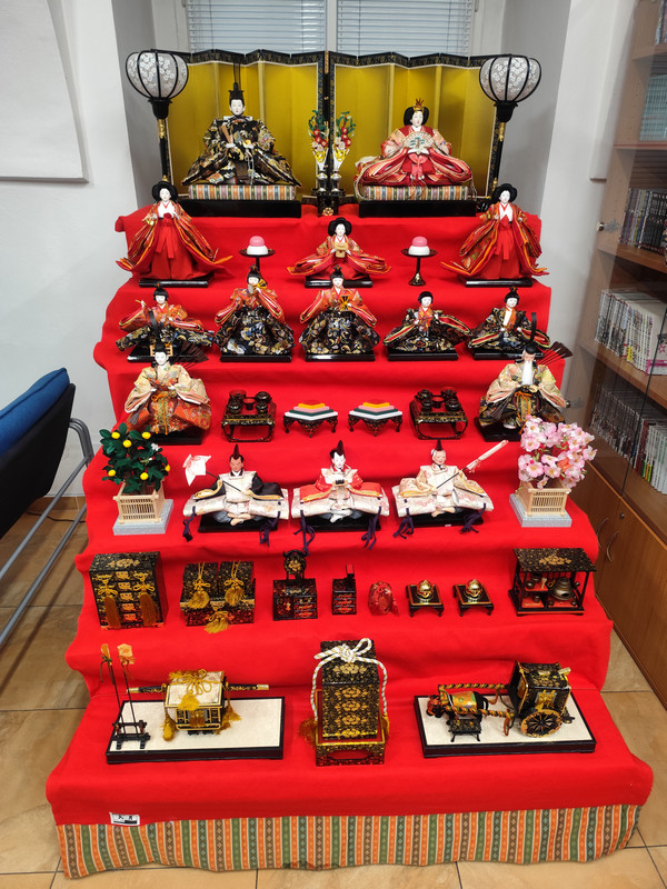 V japonském kulturním centru byla přednáška o Hina matsuri a měli vystavené panenky.