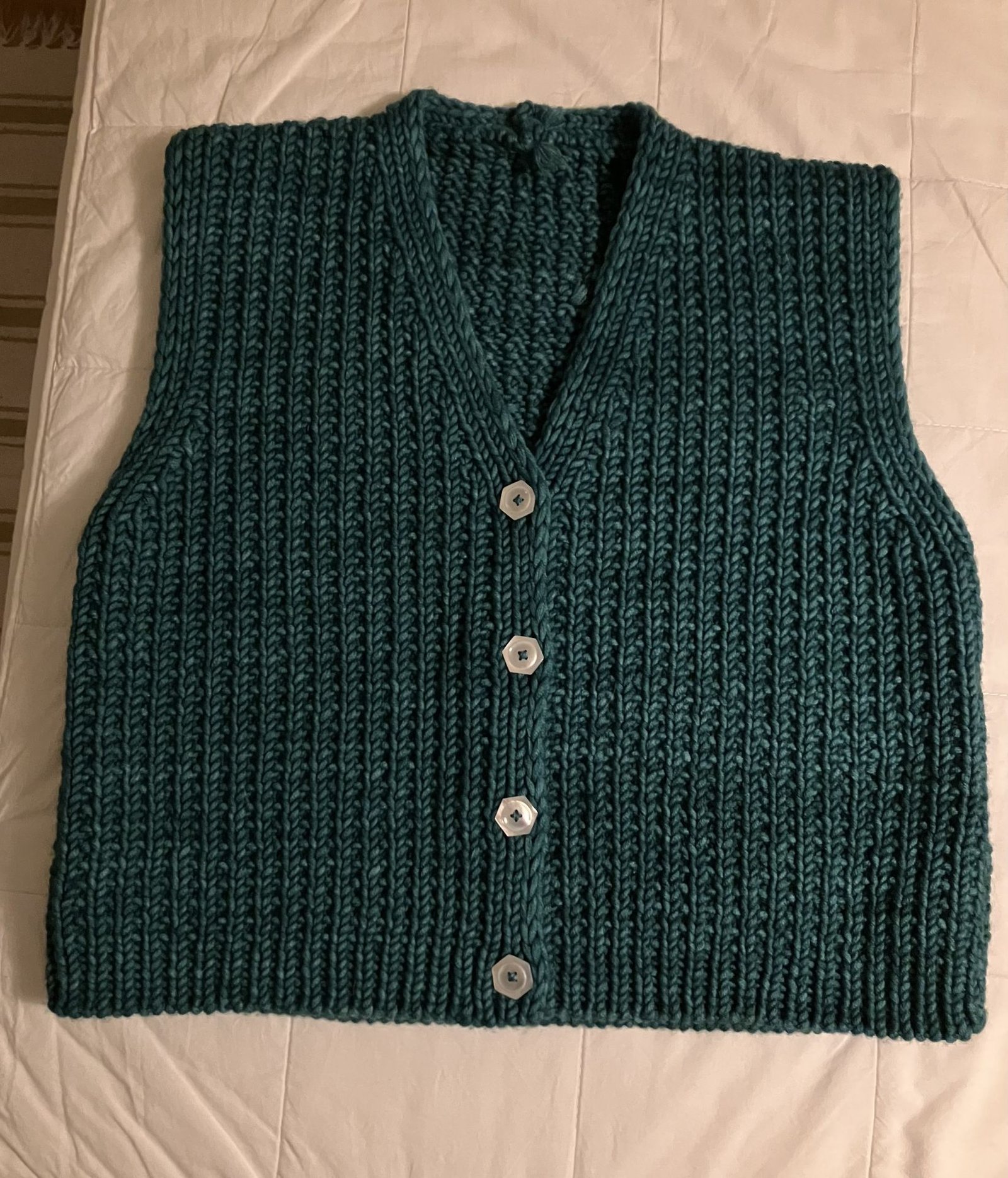 Upletla jsem si vestu. Prize je Lana Grossa Vintage Superchunky a model z jejich stranek primo pro danou prizi. Trochu jsem upravila zpusob ubirani ok, ten v navodu nebyl symetricky. Knofliky jsou stare perletove, z domacich zasob, nejspis prvorepublikove.