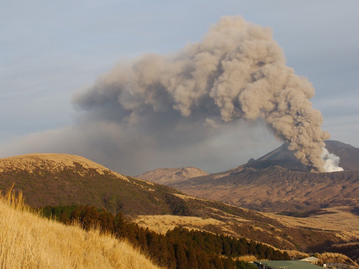 Jedná se o Aso, jednu z největších japonských sopek. Její kaldera je tak velká, že v ní vyrostlo několik vesnic.