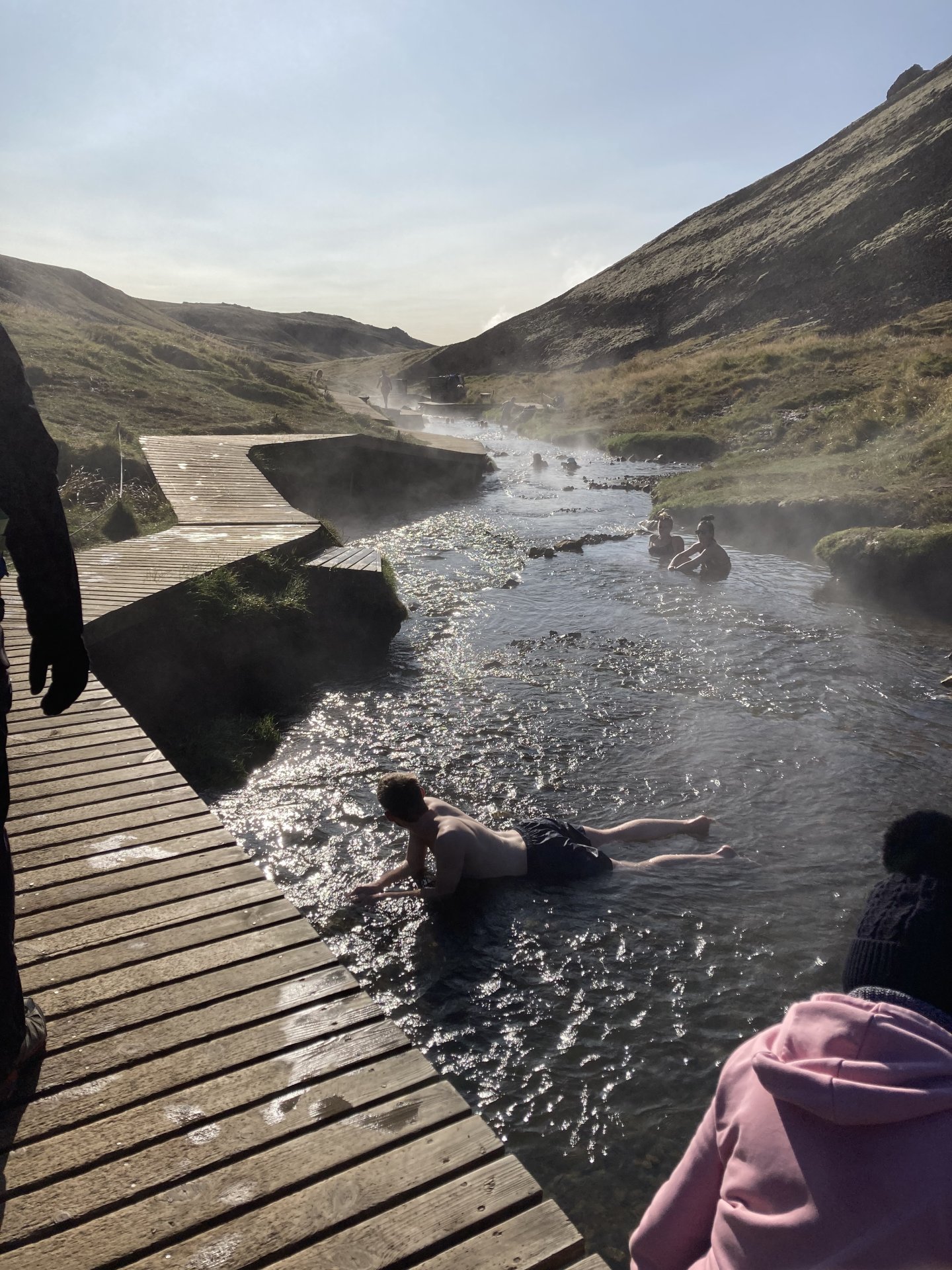 No a Top zážitek bylo koupání v horkém prameni kdesi v horách. To tak ráno prijdes k autu, oškrábeš si přední sklo a za krásného slunečného počasí vyrazíš z města. Tam se vyškrábeš 3,5 km do kopce, mineš pár zamrzlých kaluži, abys ses nakonec malém opařila v horské říčce. Úžasné to bylo!