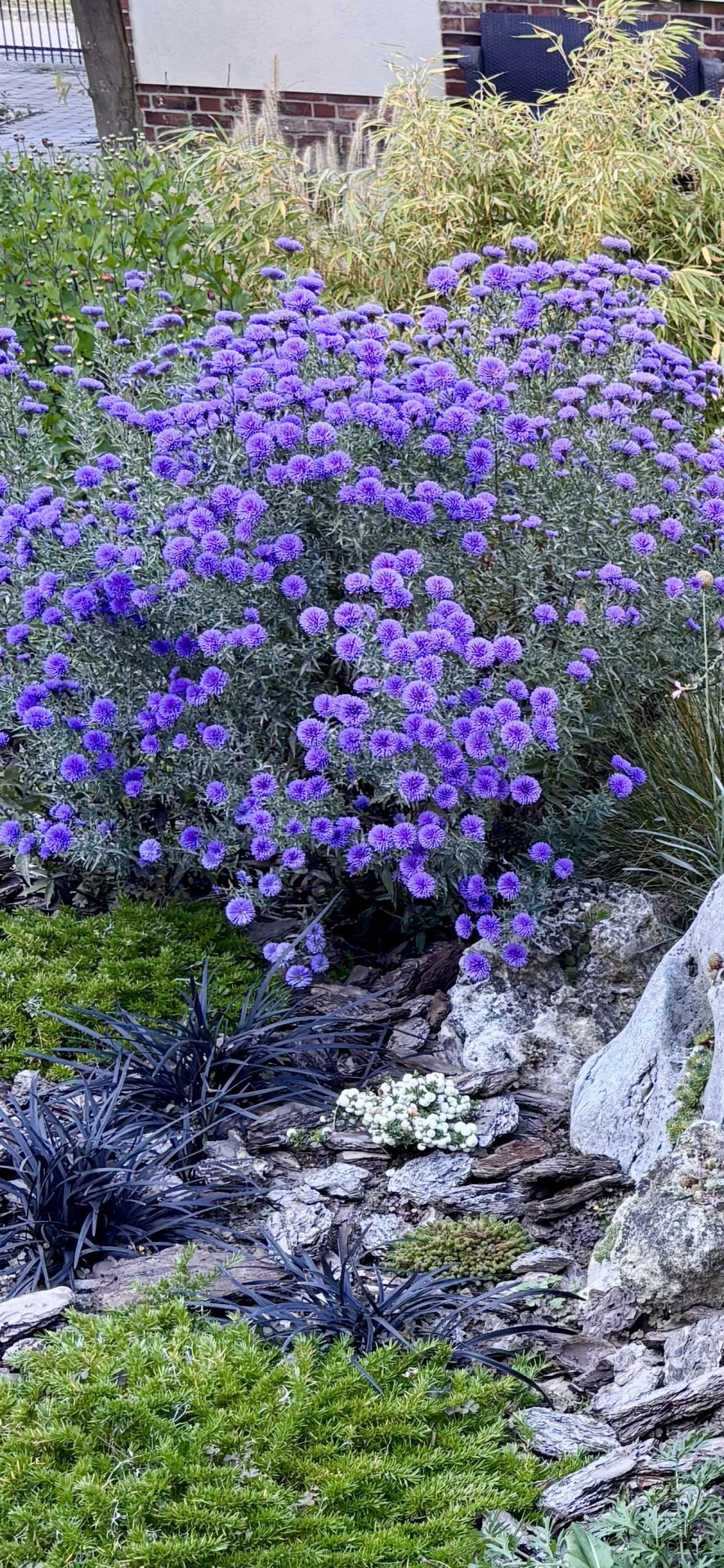 Keď som astru sadila minulý rok, bola pekne rozkvitnutá. Na jar a v lete veľmi rýchlo rástla a v záplave letničiek sa mi na tom mieste nepáčila, dvakrát som ju zrezala. A pozrite, aká krása. Chcela som ju vytrhnúť, ospravedlňujem sa jej.