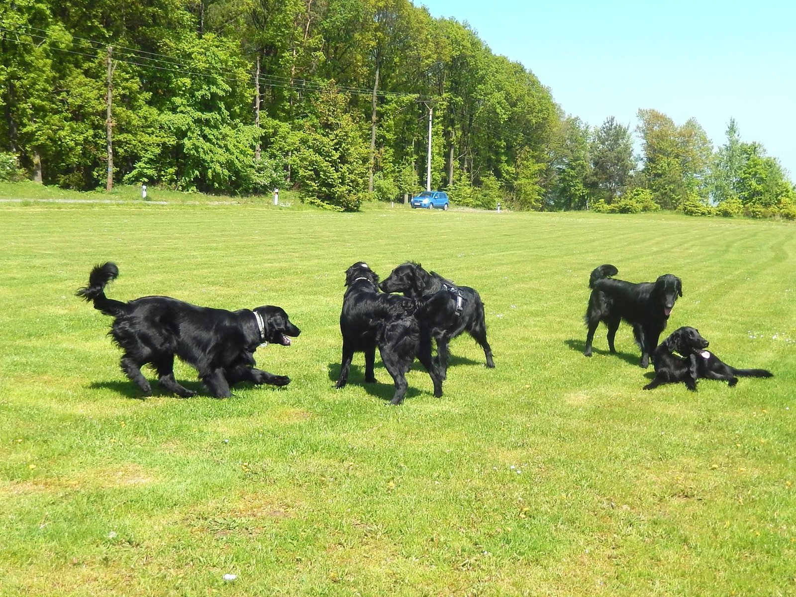 Skúšam, ale bohužiaľ vekovo a veľkostne vhodné psi tu v okolí nie sú. Tie menšie sú už staršie a hrať sa nechcú, prípadne majitelia venčia naozaj len okolo domu (netuším, čo potom s tým psom robia doma, ja ak Rikiho nevybehám, tak ma ide doma zožrať).