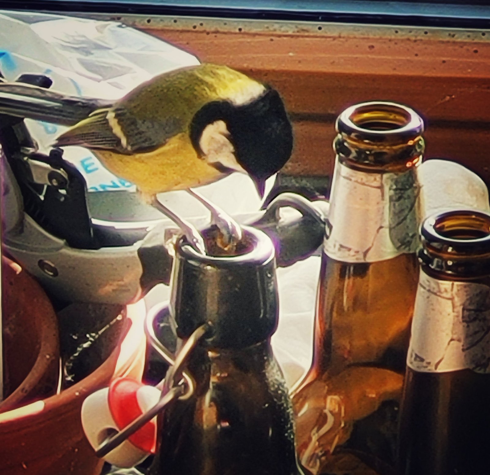 mitford sister U nás se říká "čučí jak husa do flašky", ale tady čučí evidentně sykorka :)))